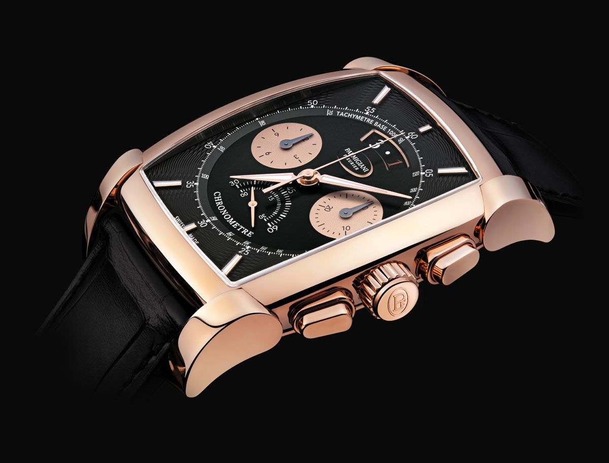 Made of hand polished 18 ct rose gold, the case measures 48.2 x 40.4 mm and houses the COSC-certified calibre PF365 oscillating at the high frequency of 36,000 vibrations per hour (5 Hz) to achieve a reading accuracy of one tenth of a second and offering 65 hours of power reserve.